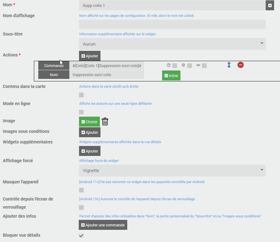 Création des widgets sur JeedomConnect pour la création de colis